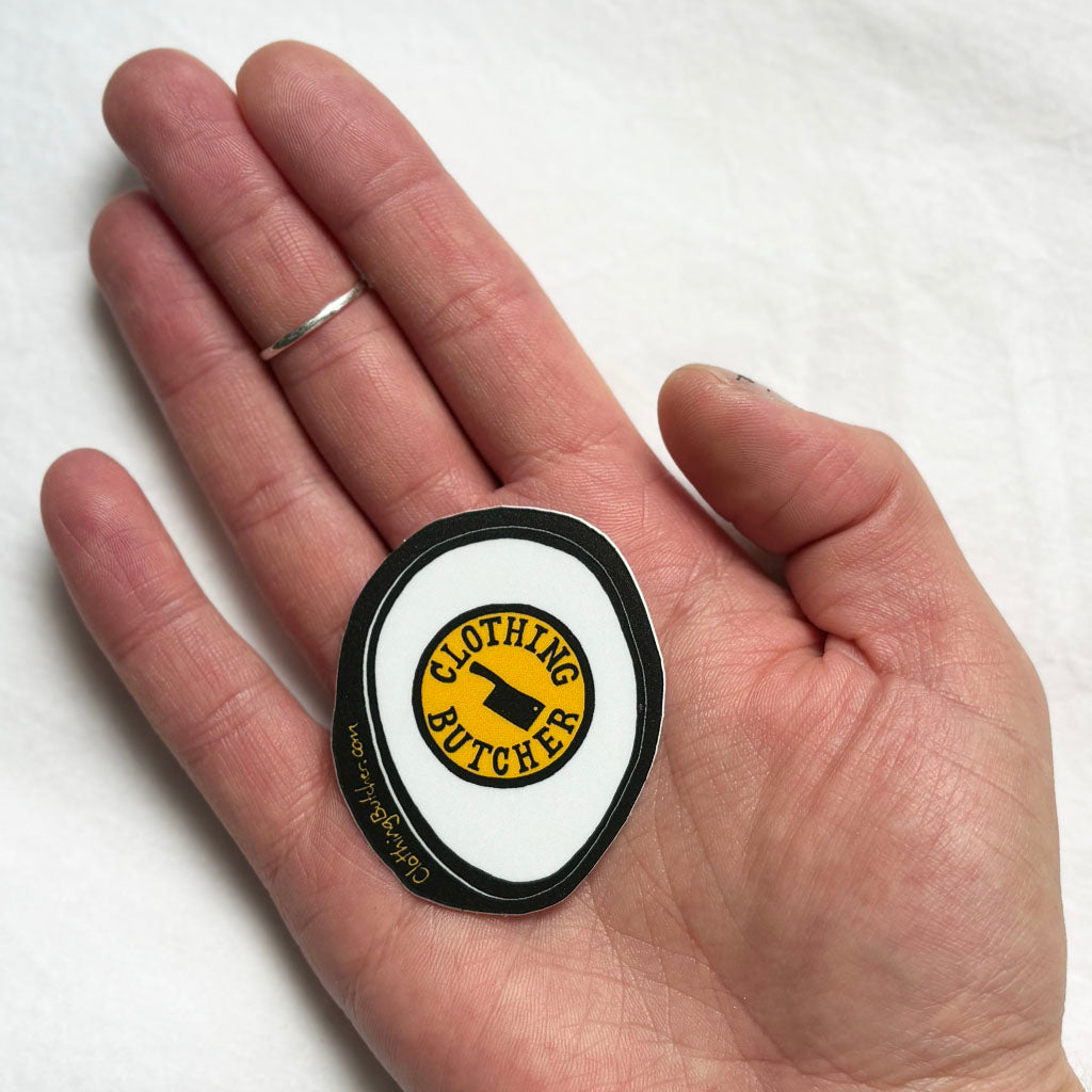 Super matte, vinyl, die cut, Clothing Butcher logo stickers.