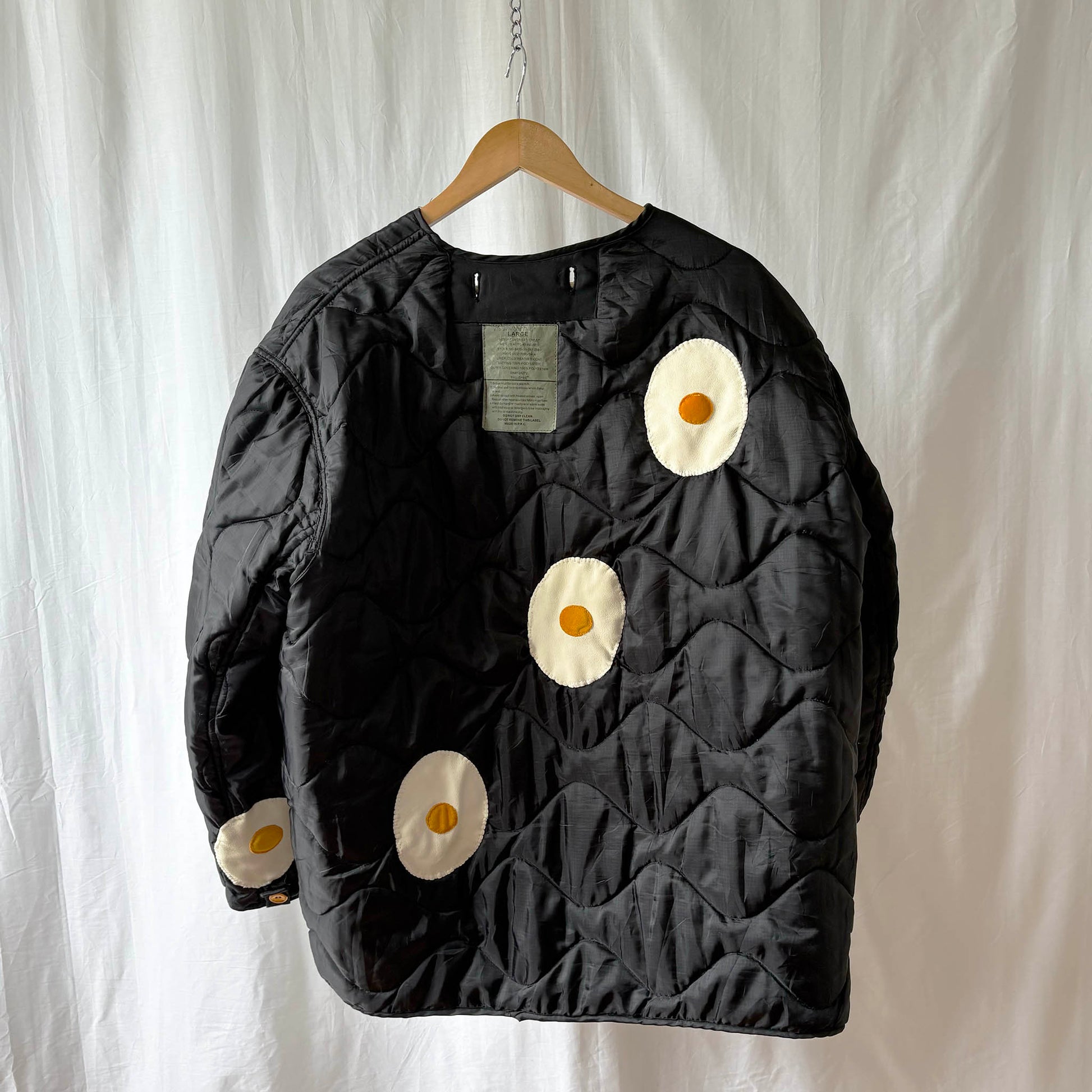 Converted Military Jacket Liner with Fried Egg Patches